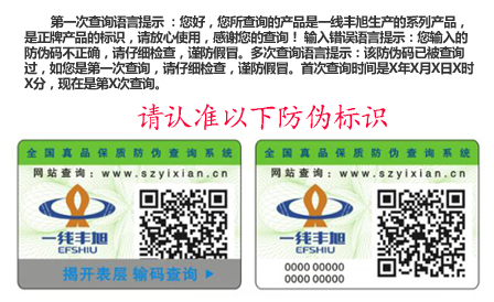 通過(guò)“認(rèn)準(zhǔn)防偽標(biāo)簽”與假貨說(shuō)拜拜,誠(chéng)信為本,努力將“一線(xiàn)豐旭”打造成國(guó)際一線(xiàn)品牌,創(chuàng)造美好和諧未來(lái)!